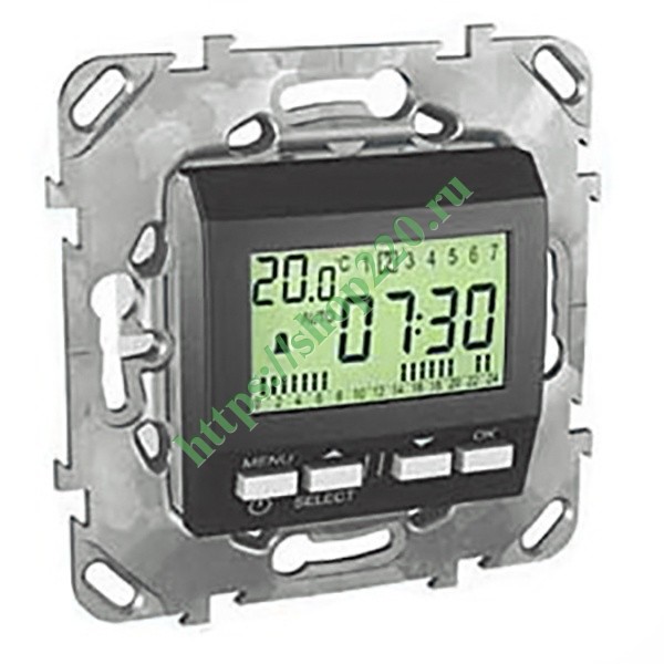 Встраимаемые часы с будильником Шнайдер Электрик Юника Топ, цвет графит MGU5.545.12ZD
