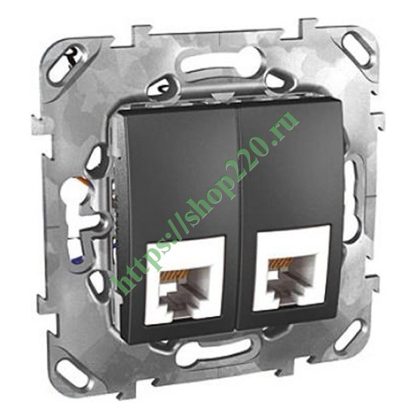 Телефонная розетка двухмодульная на 2хRj12(6 контактов) SE Unica, цвет графит MGU5.9191.12ZD