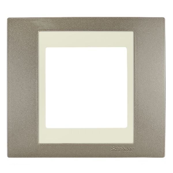 Рамка Schneider Electric UNICA ХАМЕЛЕОН (шампань) одинарная с бежевой декоративной вставкой.