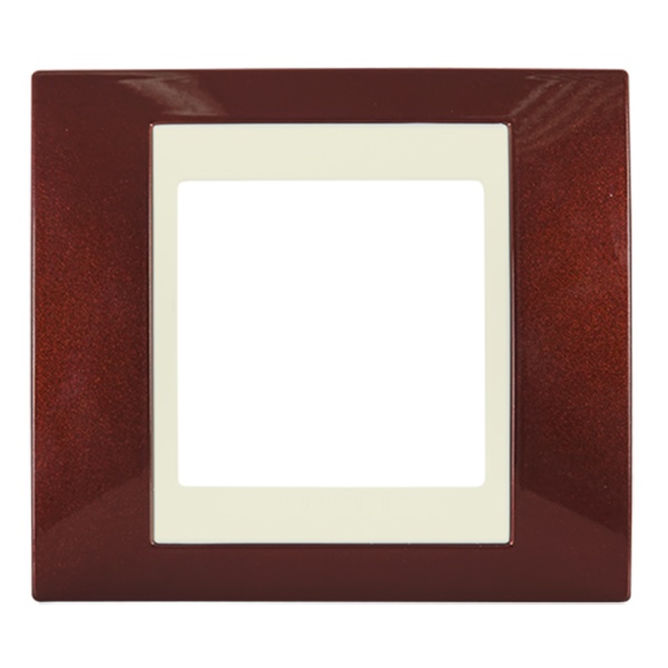 Рамка Schneider Electric UNICA ХАМЕЛЕОН (терракотовый) одинарная с бежевой декоративной вставкой.
