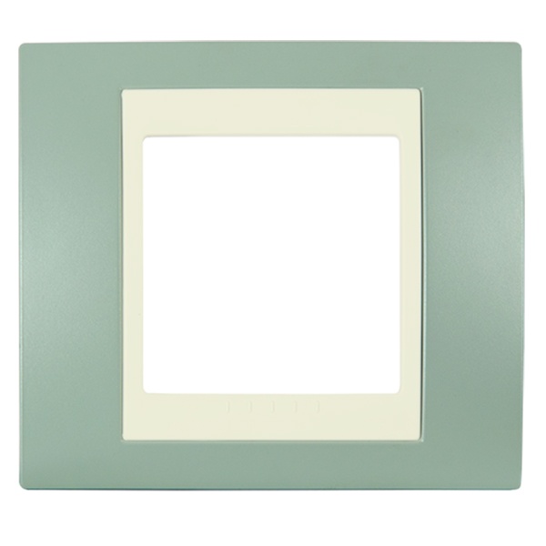 Рамка Schneider Electric UNICA ХАМЕЛЕОН (морская волна) одинарная с бежевой декоративной вставкой.