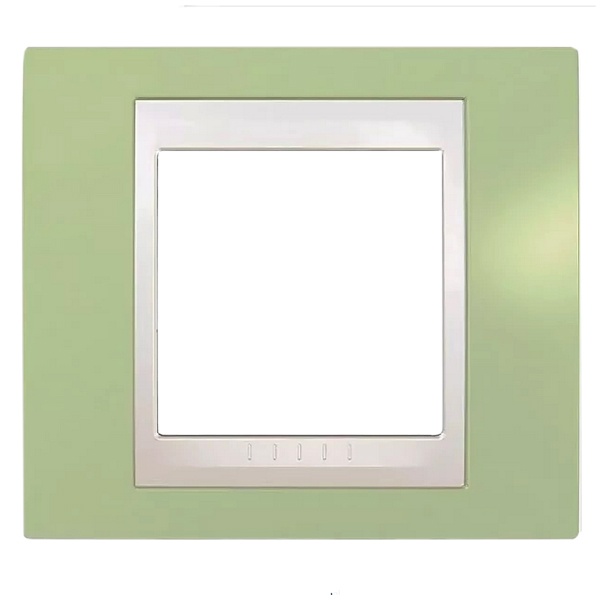 Рамка Schneider Electric UNICA ХАМЕЛЕОН (фисташковый) одинарная с белой декоративной вставкой.- Позволяет гармонично вписать электроустановочное изделие в интерьер помещения и создать свой неповторимый дизайн.
