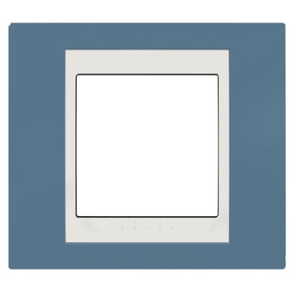 Декоративная однопостовая цветная рамка для механизмов Unica, цвет синий с белой вставкой MGU6.002.873