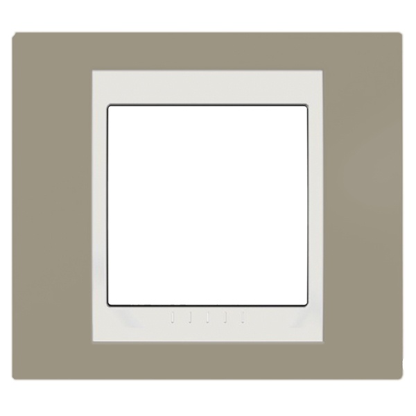 Рамка Schneider Electric UNICA ХАМЕЛЕОН (коричневый) одинарная с белой декоративной вставкой.