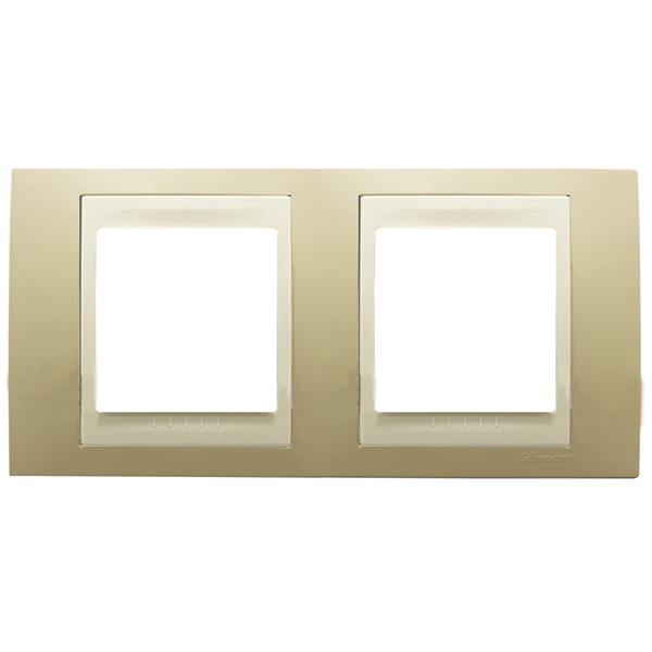 Рамка Schneider Electric UNICA ХАМЕЛЕОН (песчаный) двухместная с бежевой декоративной вставкой. - Рамка для установки в горизонтальном положении. - Позволяет гармонично вписать электроустановочное изделие в интерьер помещения и создать свой неповторимый дизайн.