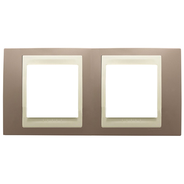 Рамка Schneider Electric UNICA ХАМЕЛЕОН (коричневый) двухместная с бежевой декоративной вставкой. - Рамка для установки в горизонтальном положении. - Позволяет гармонично вписать электроустановочное изделие в интерьер помещения и создать свой неповторимый дизайн.