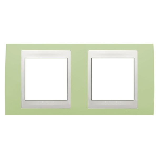 Рамка Schneider Electric UNICA ХАМЕЛЕОН (зелёное яблоко) двухместная с белой декоративной вставкой.- Рамка для установки в горизонтальном положении.- Позволяет гармонично вписать электроустановочное изделие в интерьер помещения и создать свой неповторимый дизайн.