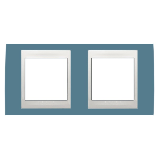 Декоративная горизонтальная 2-постовая цветная рамка для механизмов Unica, цвет синий с белой вставкой MGU6.004.873