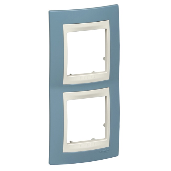 Рамка Schneider Electric UNICA ХАМЕЛЕОН (синий) двухместная с бежевой декоративной вставкой.