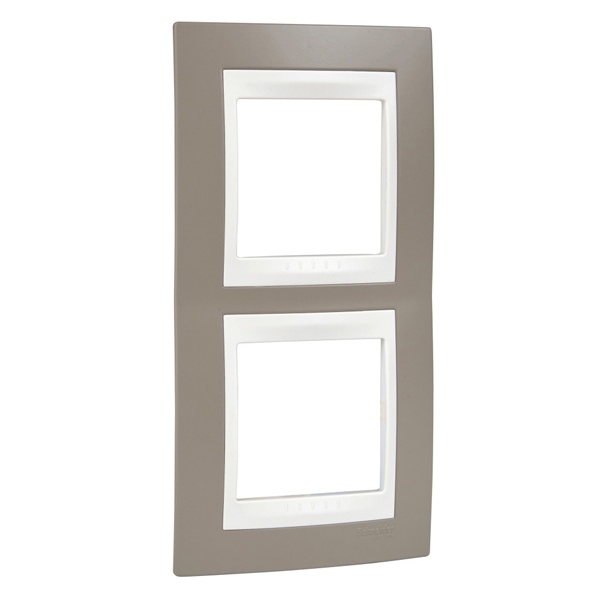 Рамка Schneider Electric UNICA ХАМЕЛЕОН (коричневый) двухместная с бежевой декоративной вставкой.