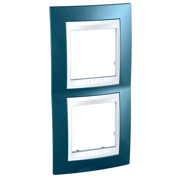 Рамка Schneider Electric UNICA ХАМЕЛЕОН голубой лёд) двухместная с белой декоративной вставкой.- Рамка для установки в вертикальном положении.- Позволяет гармонично вписать электроустановочное изделие в интерьер помещения и создать свой неповторимый дизайн.
