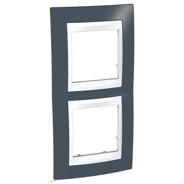 Рамка Schneider Electric UNICA ХАМЕЛЕОН (серо-зелёный) двухместная с белой декоративной вставкой.- Рамка для установки в вертикальном положении.- Позволяет гармонично вписать электроустановочное изделие в интерьер помещения и создать свой неповторимый дизайн.
