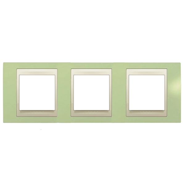 Рамка Schneider Electric UNICA ХАМЕЛЕОН (зелёное яблоко) трёхместная с бежевой декоративной вставкой. - Рамка для установки в горизонтальном положении. - Позволяет гармонично вписать электроустановочное изделие в интерьер помещения и создать свой неповторимый дизайн.