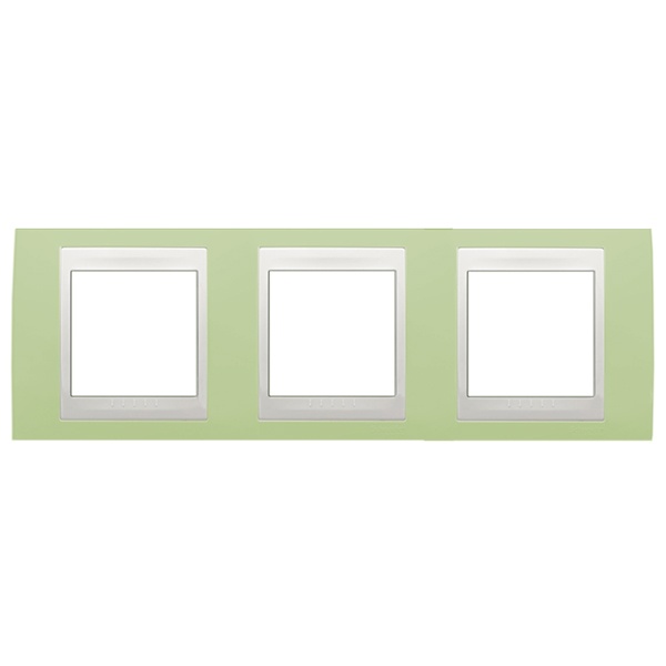 Рамка Schneider Electric UNICA ХАМЕЛЕОН (зелёное яблоко) трёхместная с белой декоративной вставкой.- Рамка для установки в горизонтальном положении.- Позволяет гармонично вписать электроустановочное изделие в интерьер помещения и создать свой неповторимый дизайн.