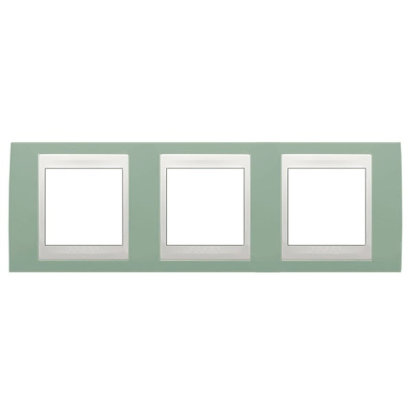 Декоративная горизонтальная 3-постовая цветная рамка для механизмов Unica, цвет морская волна с белой вставкой MGU6.006.870