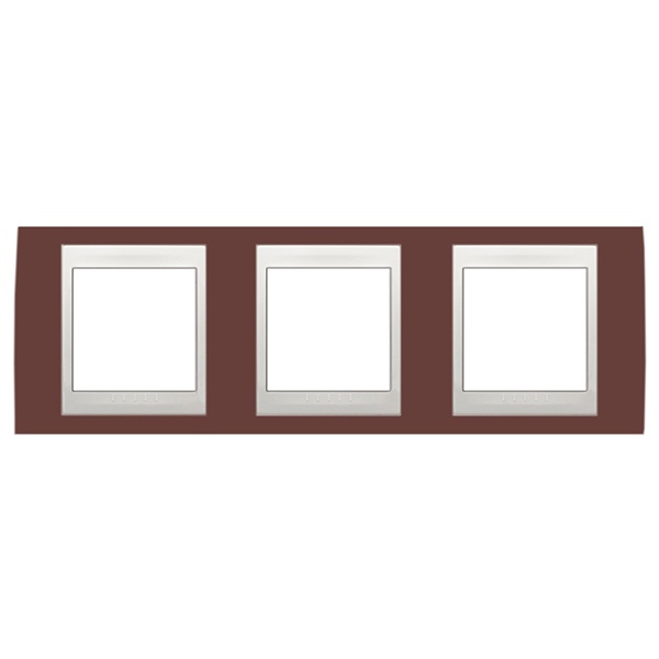 Декоративная горизонтальная 3-постовая цветная рамка для механизмов Unica, цвет гранат с белой вставкой MGU6.006.872