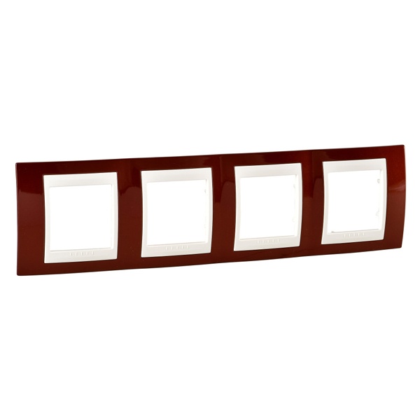 Рамка Schneider Electric UNICA ХАМЕЛЕОН (терракотовый) четырёхместная с бежевой декоративной вставкой. - Рамка для установки в горизонтальном положении. - Позволяет гармонично вписать электроустановочное изделие в интерьер помещения и создать свой неповторимый дизайн.