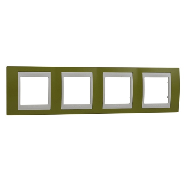 Рамка Schneider Electric UNICA ХАМЕЛЕОН (фисташковый) четырёхместная с бежевой декоративной вставкой.