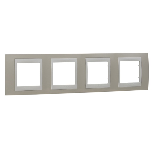 Рамка Schneider Electric UNICA ХАМЕЛЕОН (песчаный) четырёхместная с бежевой декоративной вставкой. - Рамка для установки в горизонтальном положении. - Позволяет гармонично вписать электроустановочное изделие в интерьер помещения и создать свой неповторимый дизайн.