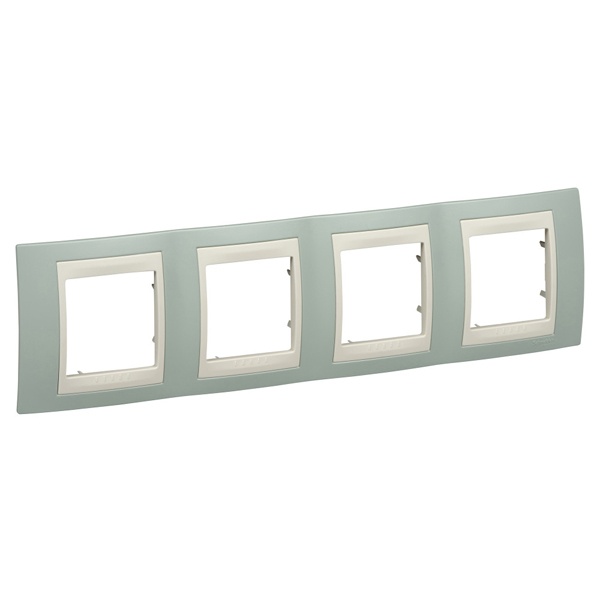Рамка Schneider Electric UNICA ХАМЕЛЕОН (морская волна) четырёхместная с бежевой декоративной вставкой.