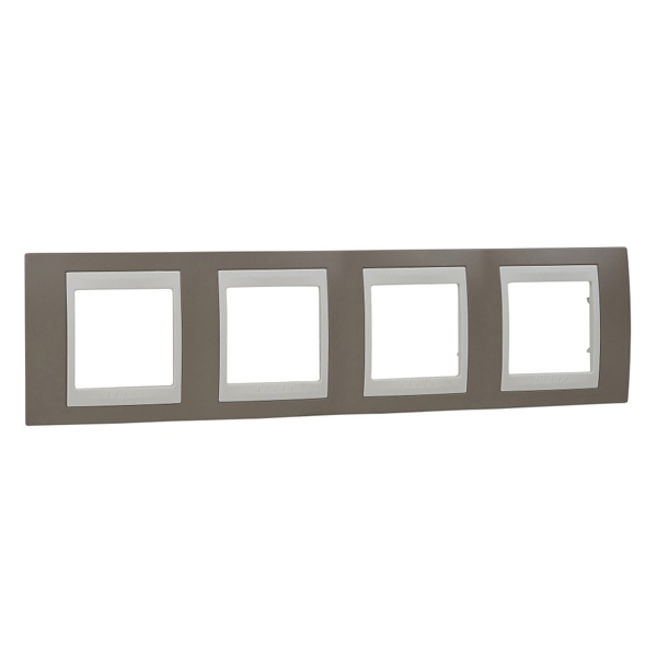 Рамка Schneider Electric UNICA ХАМЕЛЕОН (коричневый) четырёхместная с бежевой декоративной вставкой. - Рамка для установки в горизонтальном положении. - Позволяет гармонично вписать электроустановочное изделие в интерьер помещения и создать свой неповторимый дизайн.