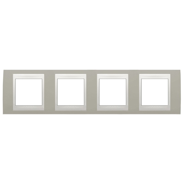 Декоративная горизонтальная 4-постовая цветная рамка для механизмов Unica, цвет серый с белой вставкой MGU6.008.865