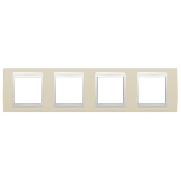 Декоративная горизонтальная 4-постовая цветная рамка для механизмов Unica, цвет песчаный с белой вставкой MGU6.008.867