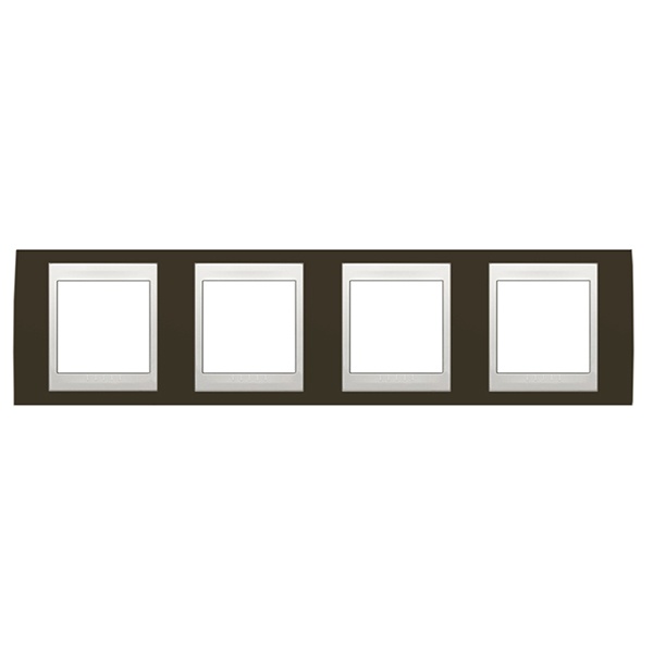 Декоративная горизонтальная 4-постовая цветная рамка для механизмов Unica, цвет какао с белой вставкой MGU6.008.871