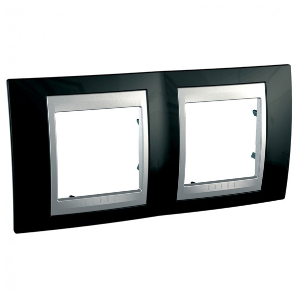 Рамка Schneider Electric UNICA TOP (родий) двухместная с алюминиевой декоративной вставкой.