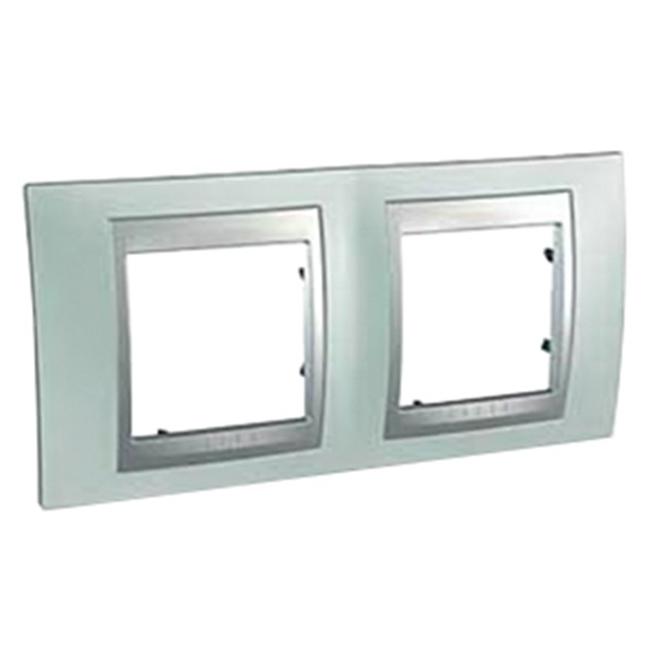 Рамка Schneider Electric UNICA TOP (флюорит) двухместная с алюминиевой декоративной вставкой.
