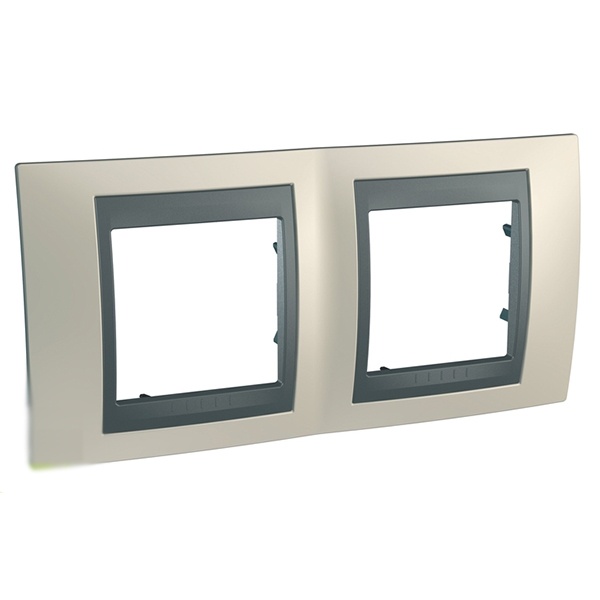 Рамка Schneider Electric UNICA TOP (опал) двухместная с алюминиевой декоративной вставкой.