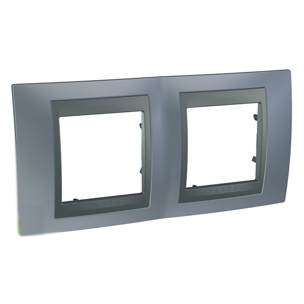 Рамка Schneider Electric UNICA TOP (грэй) двухместная с алюминиевой декоративной вставкой.
