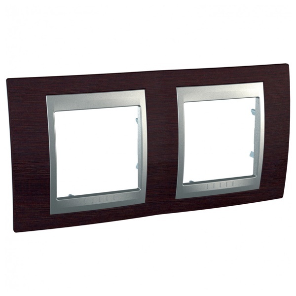 Рамка Schneider Electric UNICA TOP (венге) двухместная с алюминиевой декоративной вставкой.