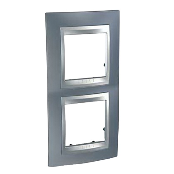 Рамка Schneider Electric UNICA TOP (грэй) двухместная с алюминиевой декоративной вставкой.