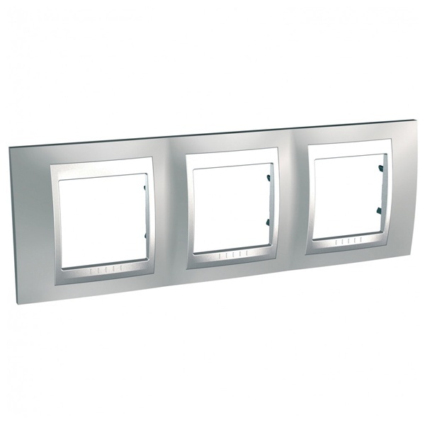 Рамка Schneider Electric UNICA TOP (хром матовый) трёхместная с алюминиевой декоративной вставкой.