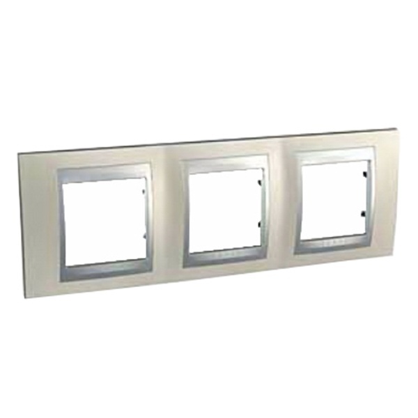 Рамка Schneider Electric UNICA TOP (опал) трёхместная с алюминиевой декоративной вставкой.