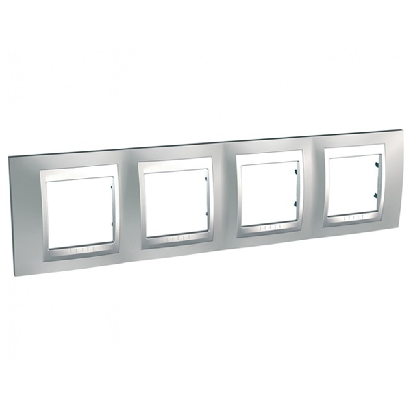 Рамка Schneider Electric UNICA TOP (хром матовый) четырёхместная с алюминиевой декоративной вставкой.