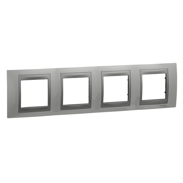 Рамка Schneider Electric UNICA TOP (нордик) четырёхместная с алюминиевой декоративной вставкой.