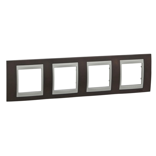 Рамка Schneider Electric UNICA TOP (венге) четырёхместная с алюминиевой декоративной вставкой.