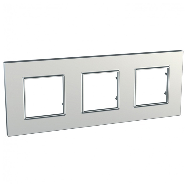 Рамка Schneider Electric UNICA QUADRO (серебро) трёхместная, устанавливается в вертикальном и горизонтальном положениях.