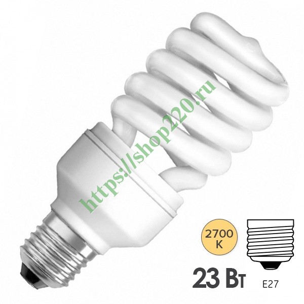 Компактная спиральная люминесцентная лампа КЛЛ мощностью 23 Ватта с цоколем Е27 на 220 Вольт 4052899916241
