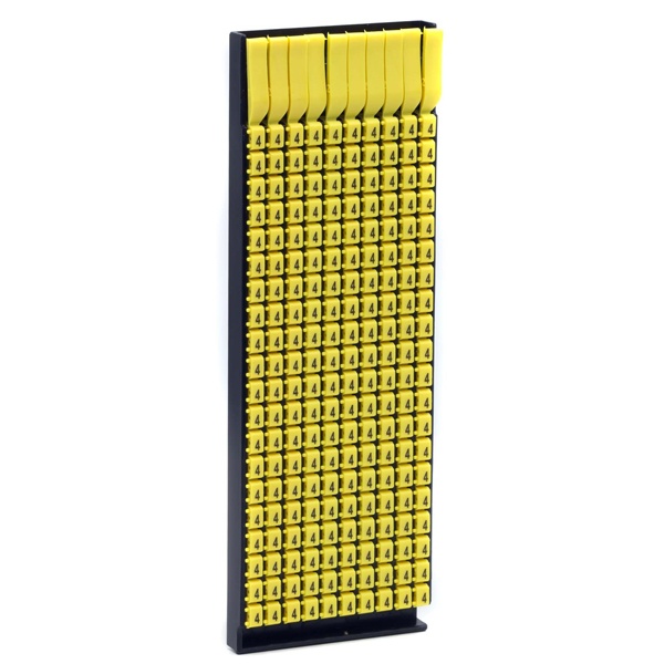 Пластиковый желтый маркер для кабеля сечением 0,5-1,5мм2 цифра 4, ДКС MKF4S1