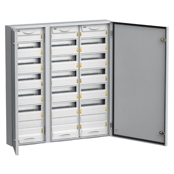 Настенный электрощиток ИЭК трехсекционный на 216 модулей со сплошной дверцей, накладного монтажа MKM11-N-216-54-Z-U