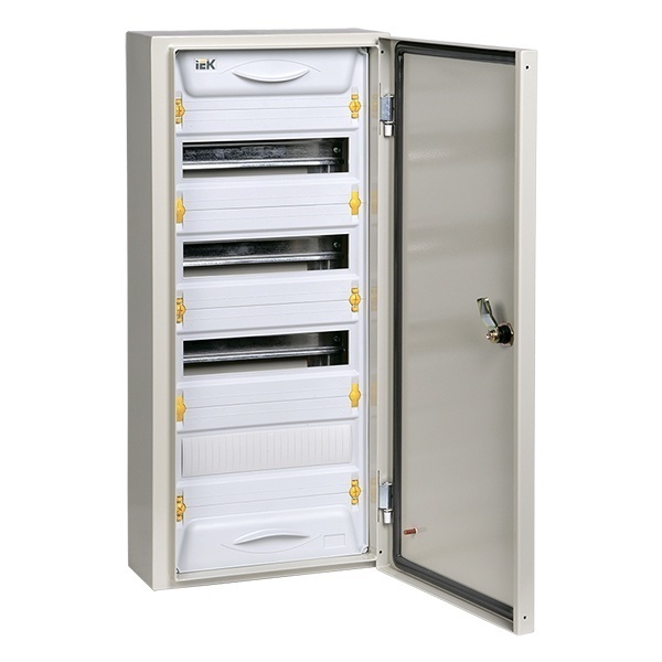 Щит IEK UNIVERSAL ЩРн-48з-1 на 48 модулей — это аккуратная «рабочая коробка» для сборки распределения, когда нужно спрятать автоматику, оставить нормальный доступ и не бояться пыли или брызг. Формат навесной, металл, закрытая дверца — то, что чаще всего ставят в подсобках, на лестничных клетках, в небольших щитовых и техпомещениях.