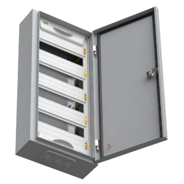 Почему берут именно такой формат: когда нужен навесной металлический щит с нормальной защитой по IP, но без перехода в громоздкий шкаф. 48 модулей — это уже «взрослый» объём: можно собрать ввод с УЗИП/реле (если требуется по проекту), отдельные линии на силовые потребители и освещение, оставить место под резерв. Плюс удобство для электрика на обслуживании — всё за дверцей, доступ предсказуемый, шины на месте, щит выглядит аккуратно и не пугает хозяев «открытой» начинкой.