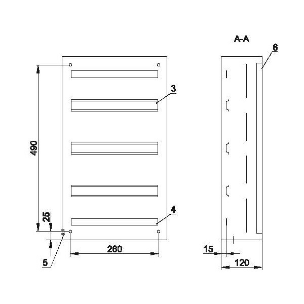 • Оцинкованная рейка для крепления шин N и PE.