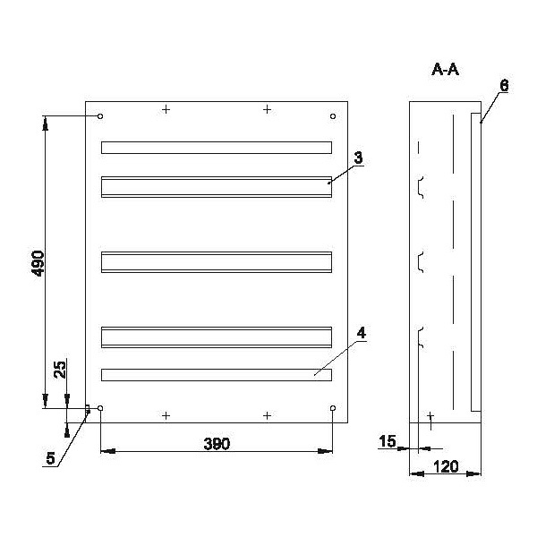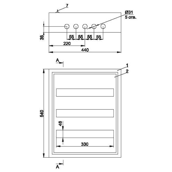 • Оцинкованная рейка для крепления шин N и PE.