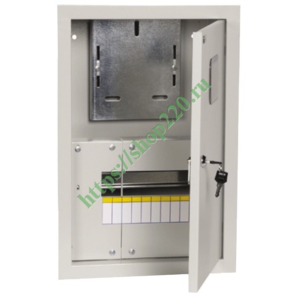 Щит металлический ЩУРв-1/9зо-1 36 УХЛ3 IP30 на 1-фазный счетчик и 9 модулей встраиваемый ИЭК MKM24-V-09-31-ZO