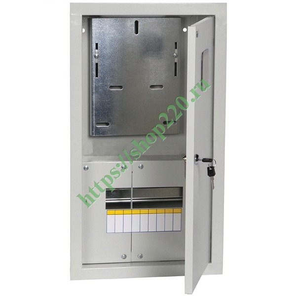 Щит металлический ЩУРв-3/9зо-1 36 УХЛ3 IP30 на 3-фазный счетчик и 9 модулей встраиваемый ИЭК MKM34-V-09-31-ZO
