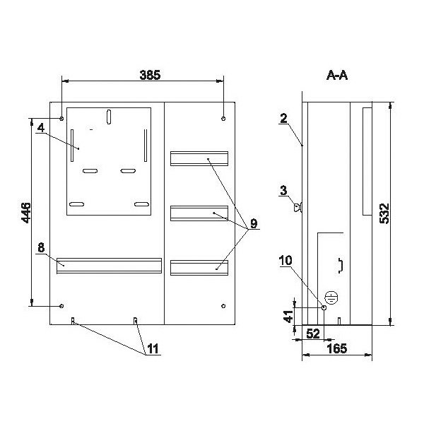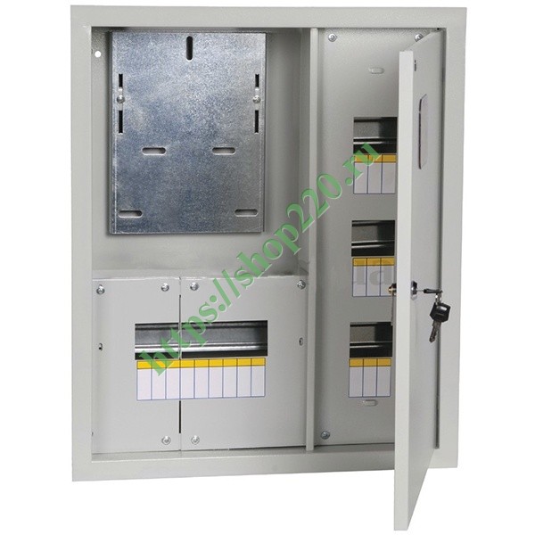 Щит металлический ЩУРв-3/18зо-1 36 УХЛ3 IP31 на 3-фазный счетчик и 18 модулей встраиваемый ИЭК MKM34-V-18-31-ZO